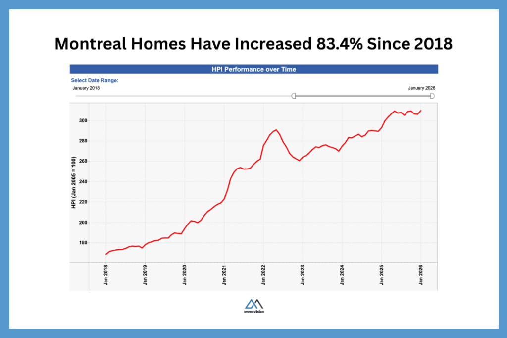 According to MLS® Home Price Index (HPI), property prices across Canada have increased 24.4% since January 2018, with certain cities considerably outperforming the wider market. In Montreal for instance, home prices have gone up by 83.4% over the same time period.
